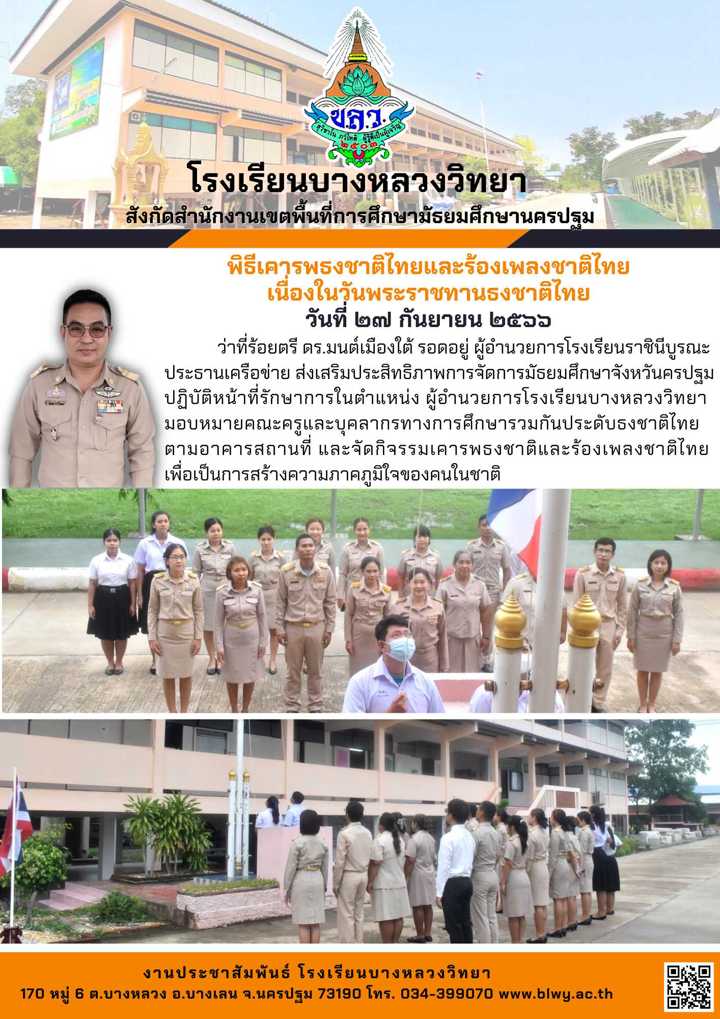 พิธีเคารพธงชาติไทยและร้องเพลงชาติไทย เนื่องในวันพระราชทานธงชาติไทย
